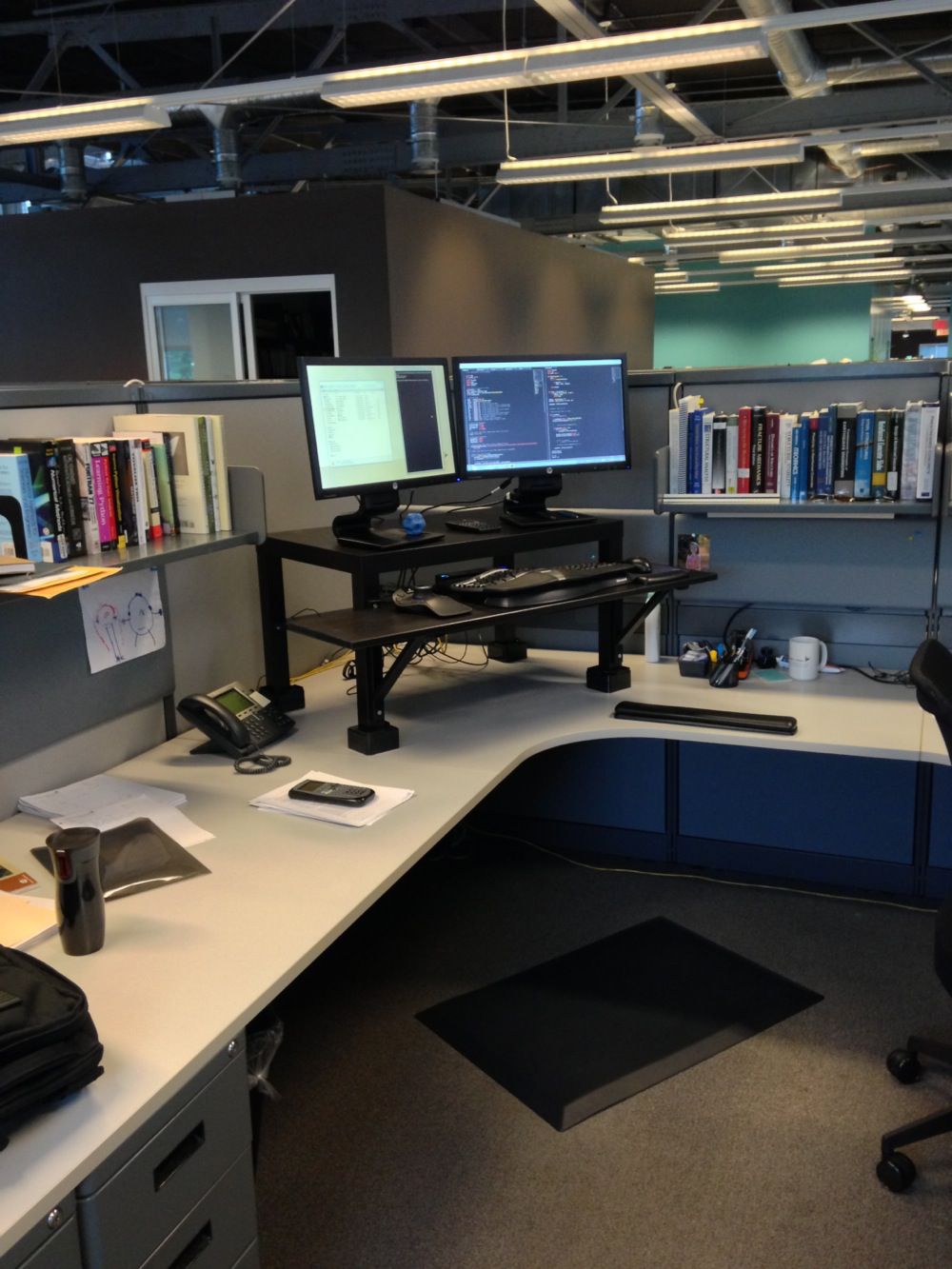 One of the items on my post-PhD to-do list was to transition to standing while working. Everyone has seen the “sitting is the new smoking” articles (e.g. here, here, or here), and while I’m no medical expert, it’s no stretch for me to accept that our bodies aren’t designed to sit 8-10 hours per day.1 I felt like this was a straightforward step in a healthier and more active lifestyle.